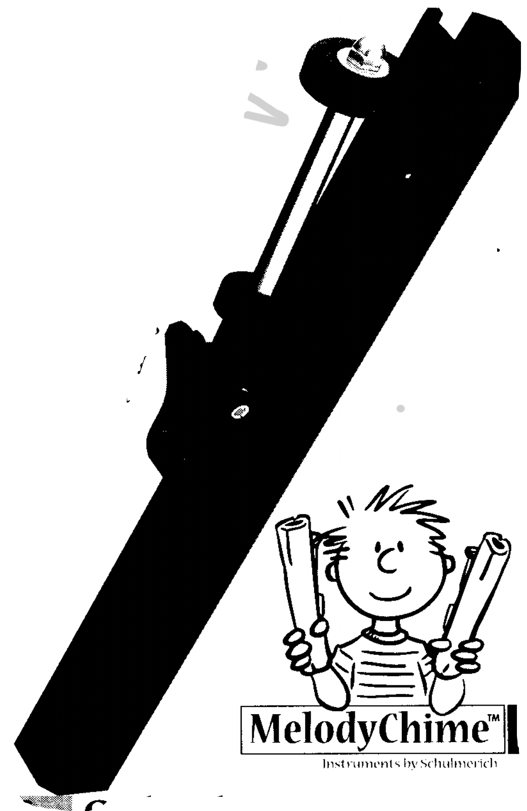 1. The chime tube is held vertically, tines up, with the clapper mechanism facing the shoulder.